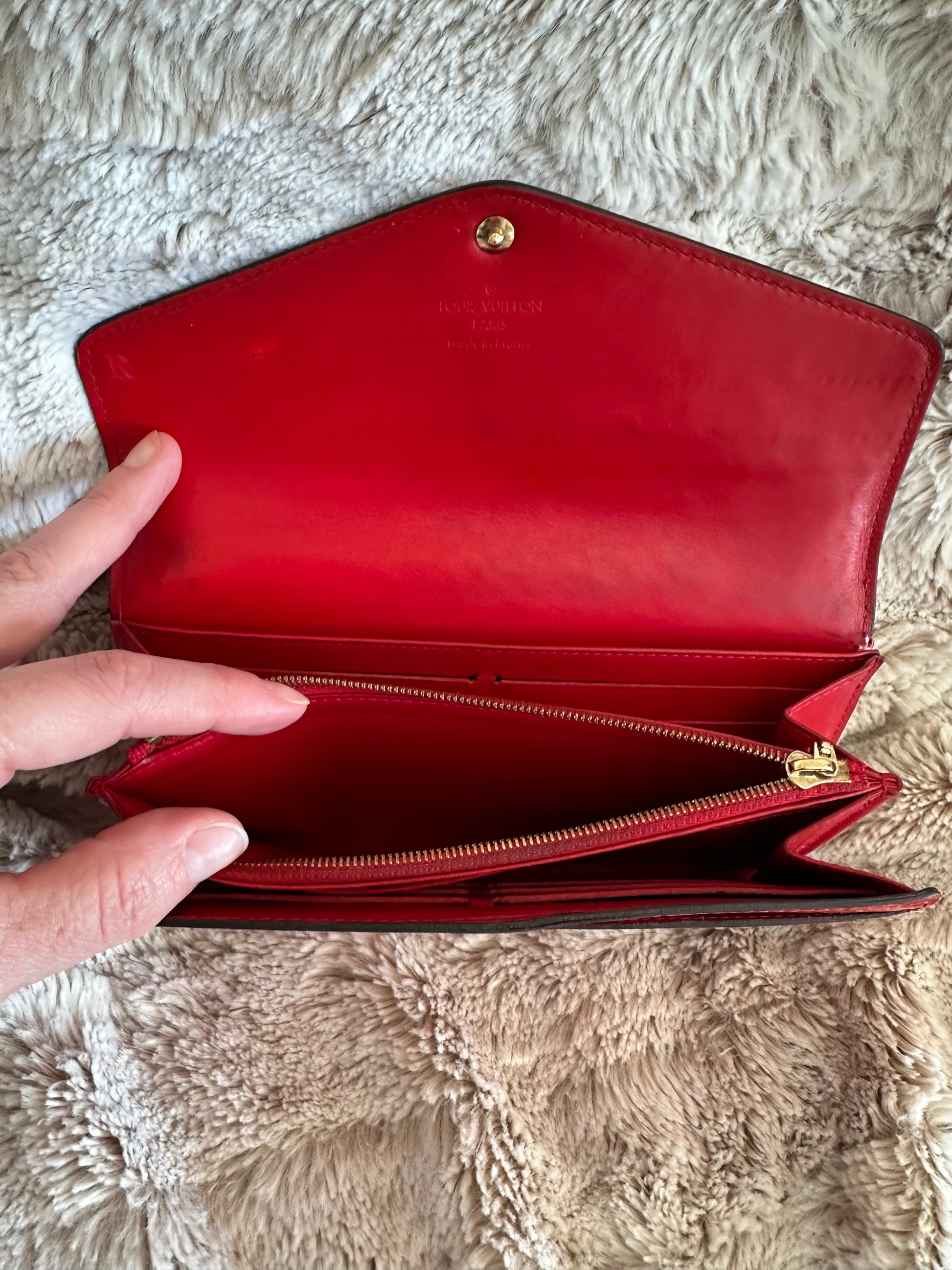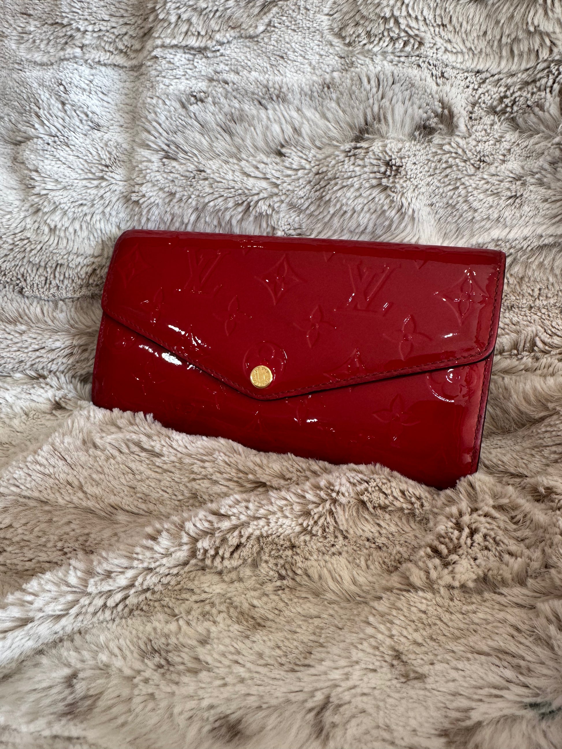 Louis Vuitton Vernis (patent leather) Sarah wallet. Preloved. COA included! Good condition. See pictures for details. All sales final.